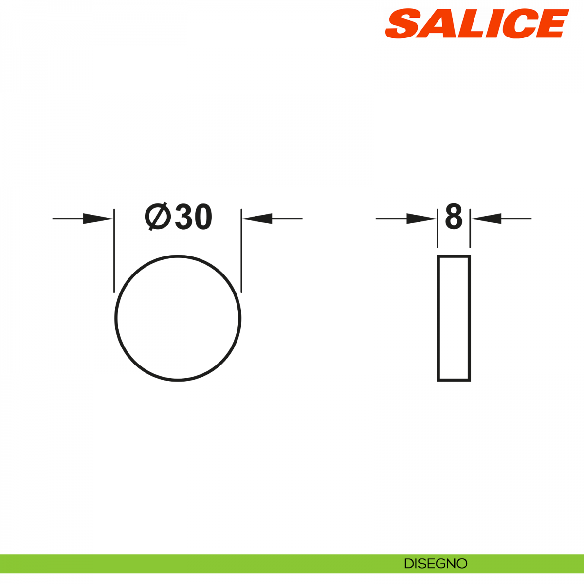 Placchetta copriscatolina tonda in plastica argento satinato Salice P2CTA09 diametro 30 mm per cerniera per anta in vetro.