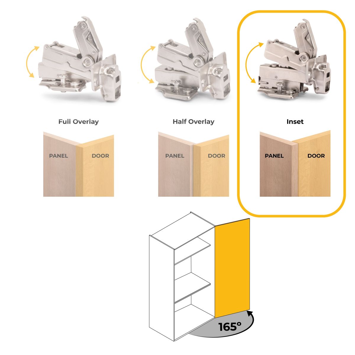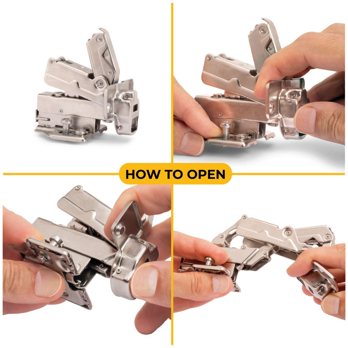 Cerniere per ante progettate per l'utilizzo nei mobili della casa e dell'ufficio con alta qualità e al miglior prezzo. Con pistone ammortizzatore che regola la chiusura soft dell'anta.