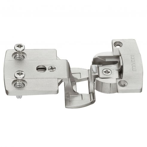 Cerniera per mobile da ufficio Hafele Aximat 300, per montaggio ad angolo, fuga 4 mm, regolazione 3D, con rullo visibile, da avvitare.