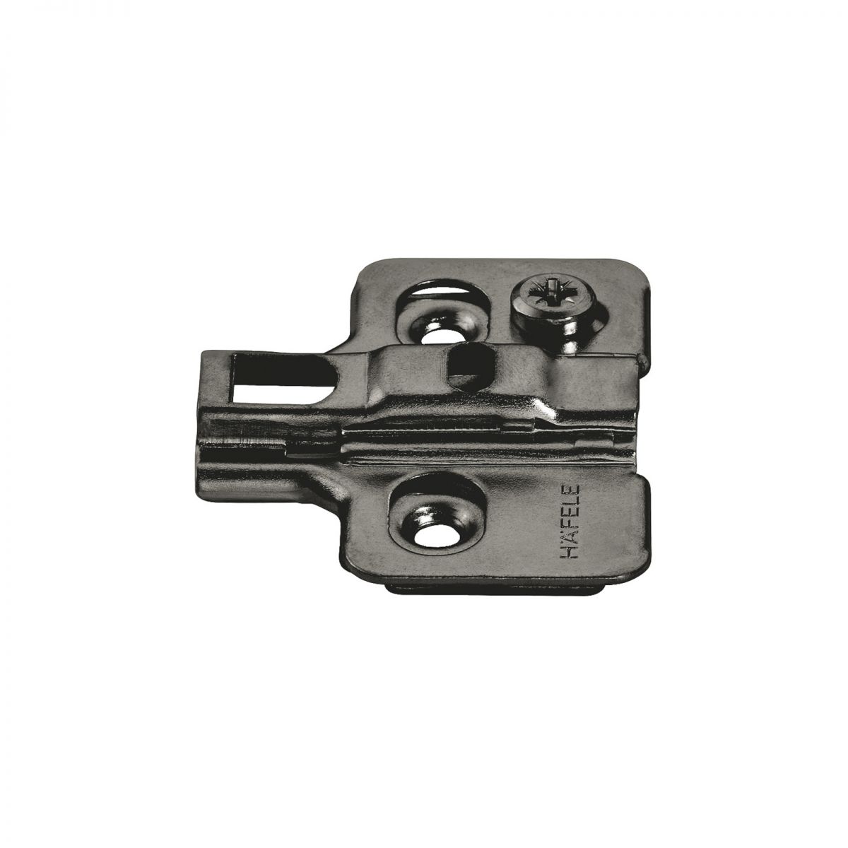 Base di montaggio a croce Hafele Metalla 310 SM, con tecnica di montaggio rapido, regolazione in altezza ±2 mm tramite asola, da avvitare con viti per truciolare, finitura nera.