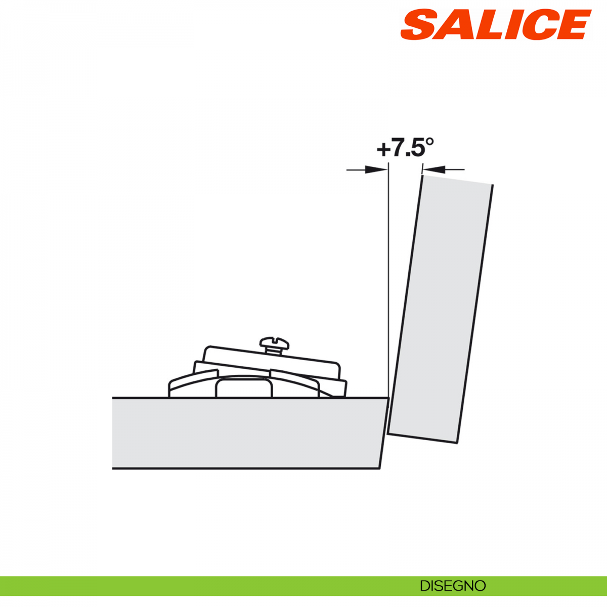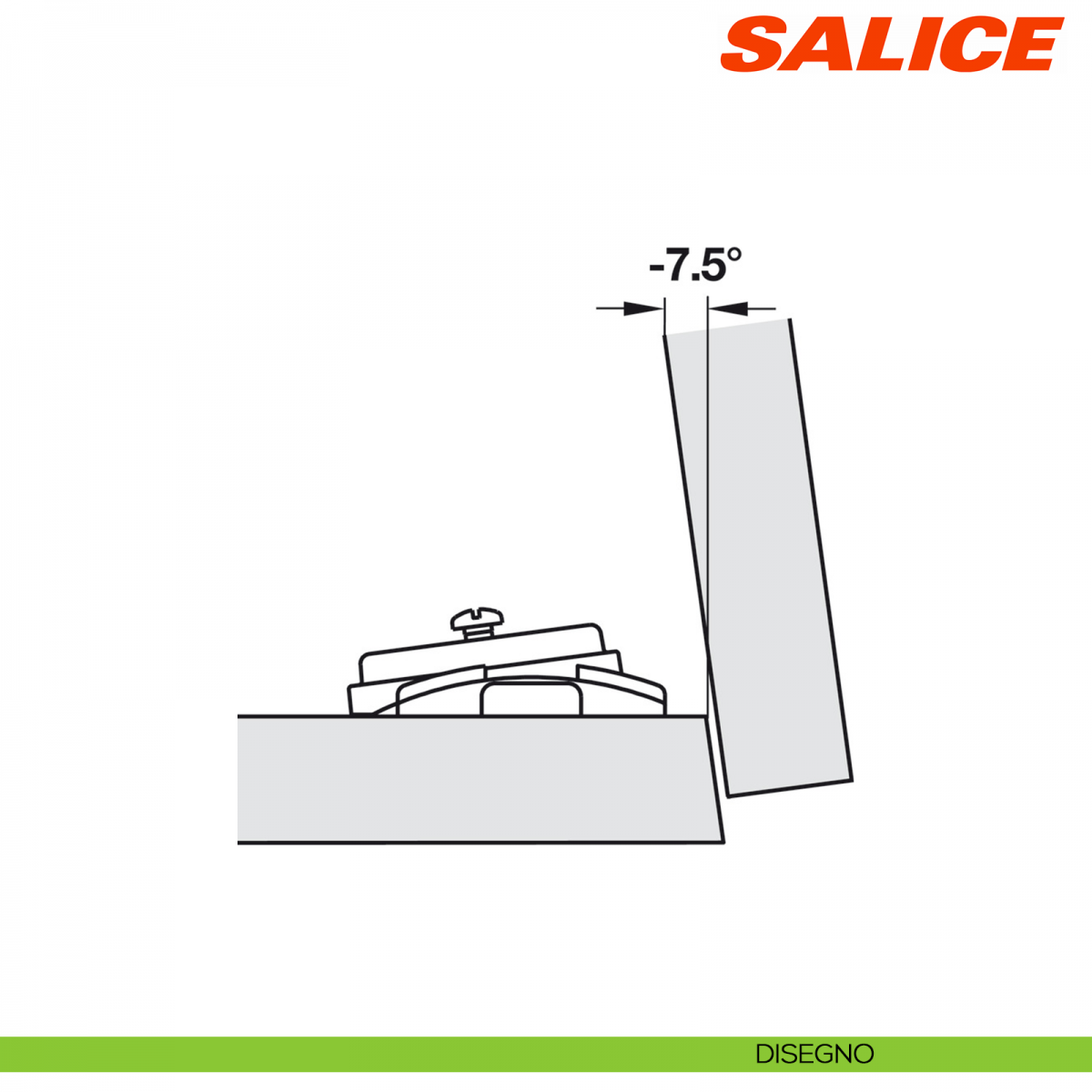 Base in zama inclinabile da -7,5 a +7,5 gradi e posizioni intermedie per applicazioni angolari Salice B2V3BW9R, fissaggio mediante vite per legno.