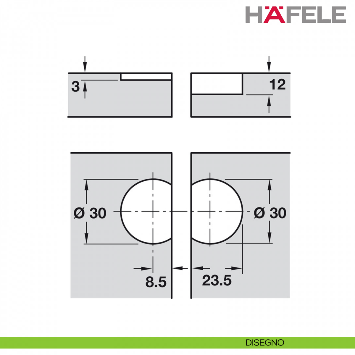 Cerniera per ante a ribalta in legno Hafele Plano-Medial angolo di apertura 90 gradi