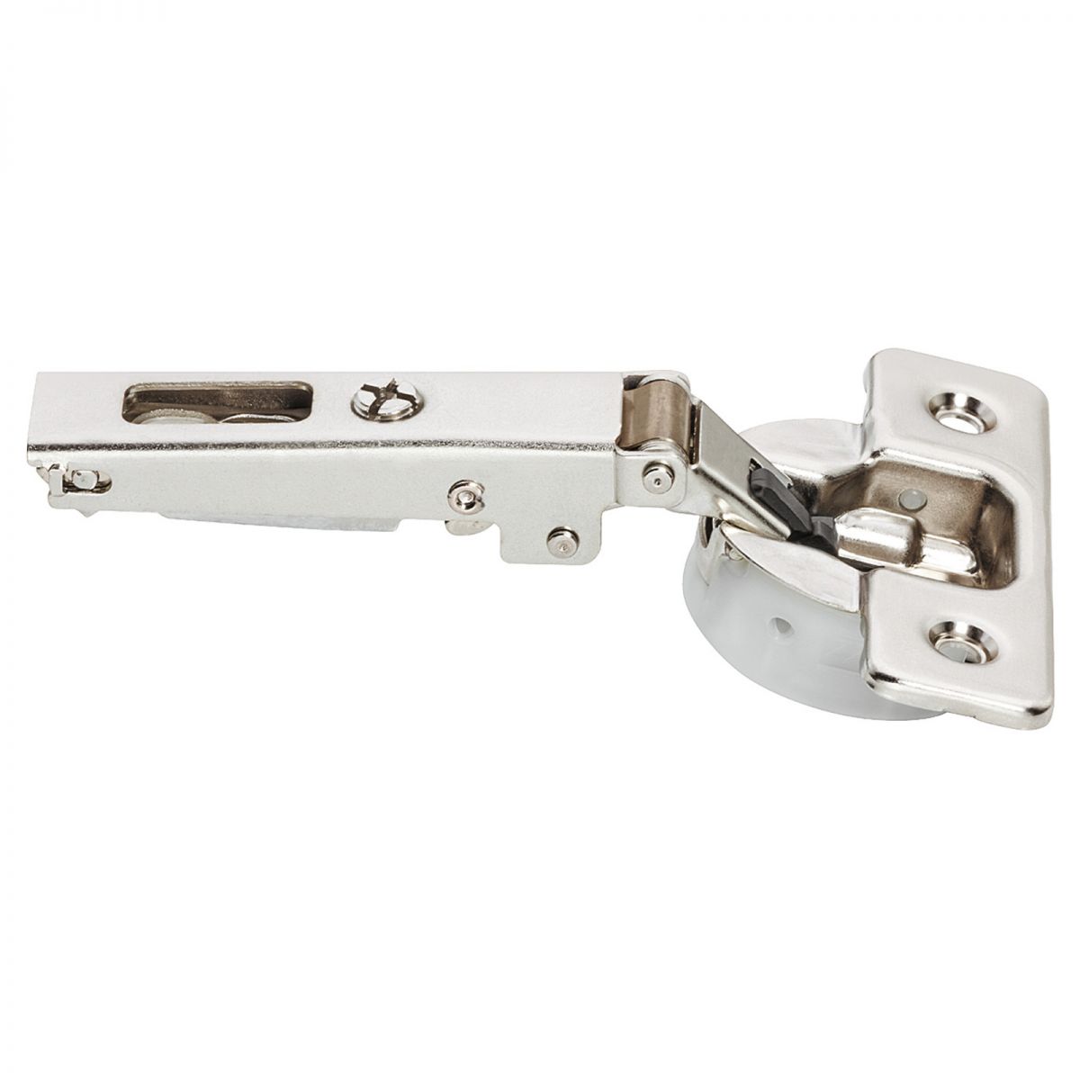 Cerniera Salice C7A6AE9 Serie Silentia+, per ante in legno con apertura 110 gradi, collo 0 per montaggio ad angolo, diametro foratura 35 mm, per applicazioni standard, con ammortizzatore regolabile integrato nella gabbia della cerniera.
