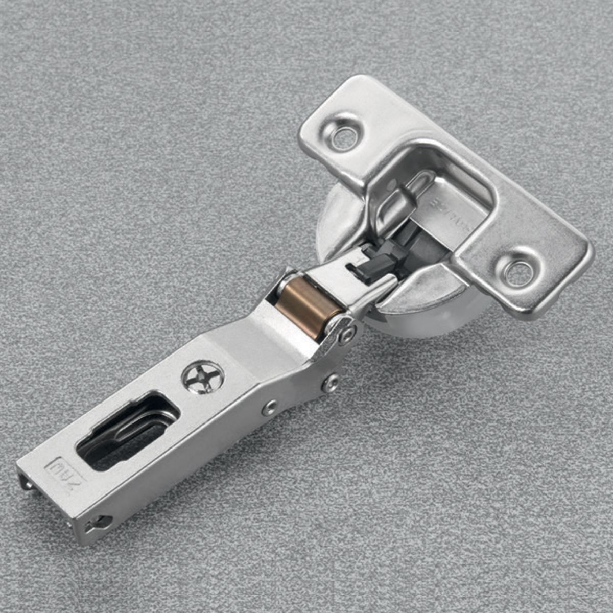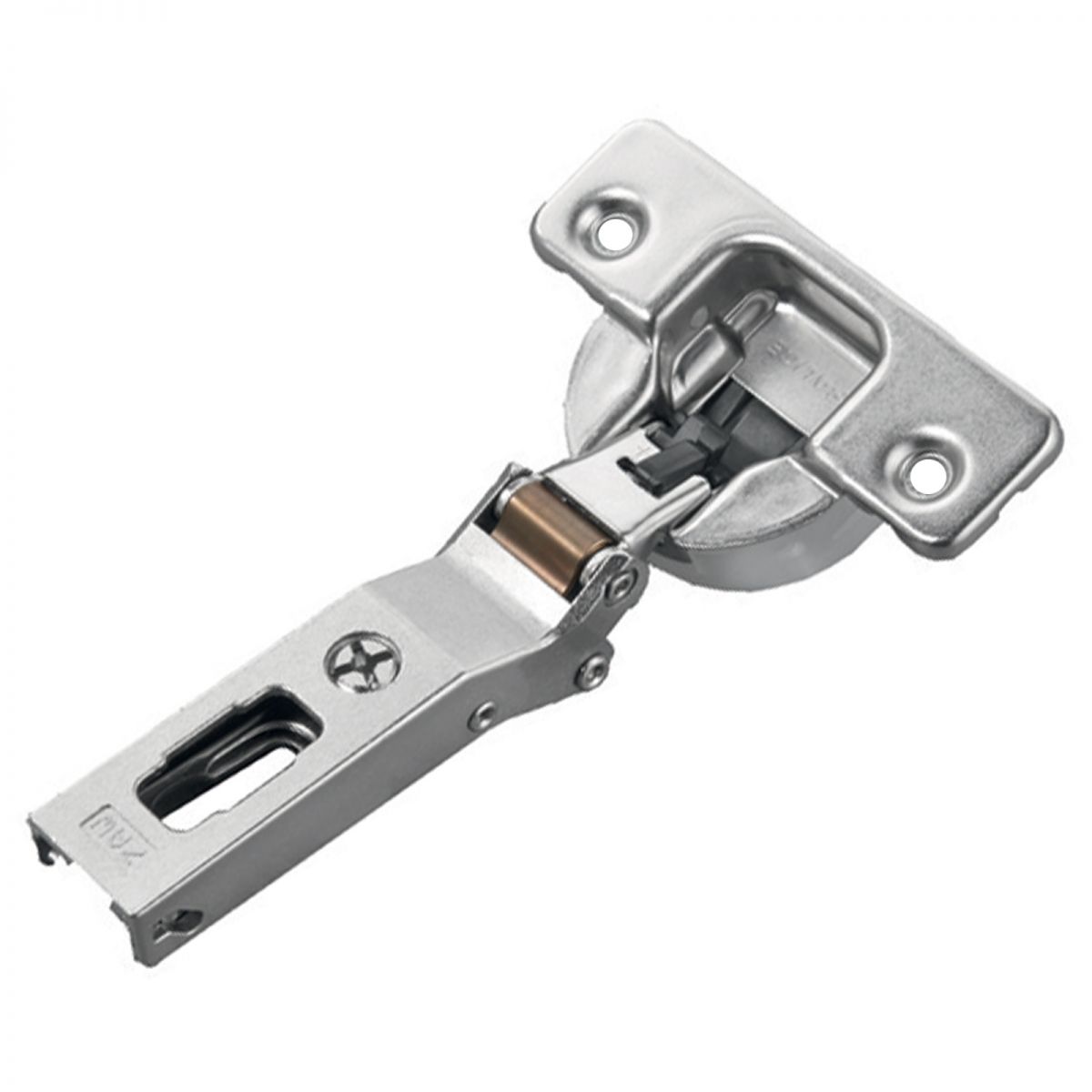 Cerniera Salice C7A6WE9 Serie Silentia+, per ante in legno con apertura 110 gradi con applicazione angolare negativa 30 gradi, diametro foratura 35 mm, per ante con spessore minimo 16 mm, con ammortizzatore regolabile integrato nella gabbia della cerniera.