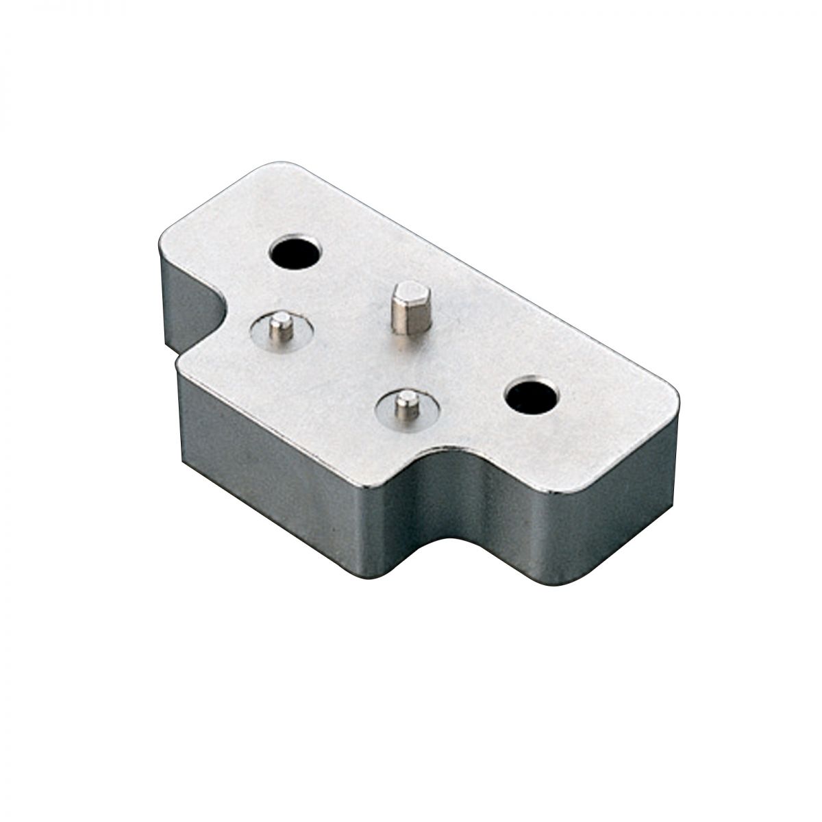 Base H=0 asimmetrica a croce per cerniera Salice B383E09, specifica per le cerniera Serie 300 con ingombro ridotto in profondità, fissaggio mediante viti per legno.