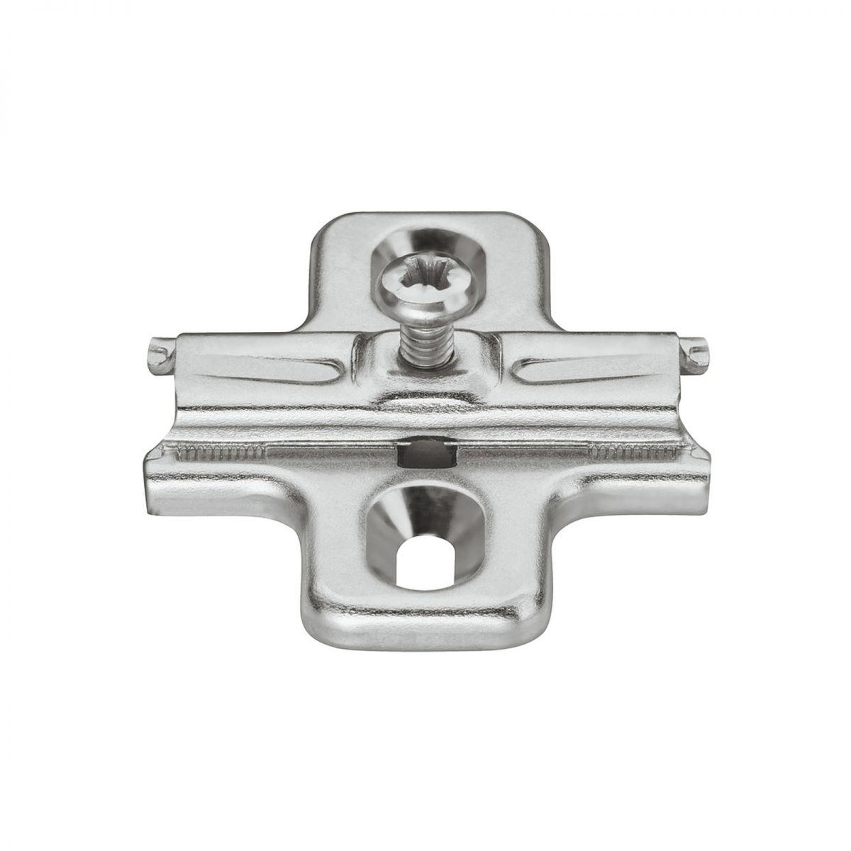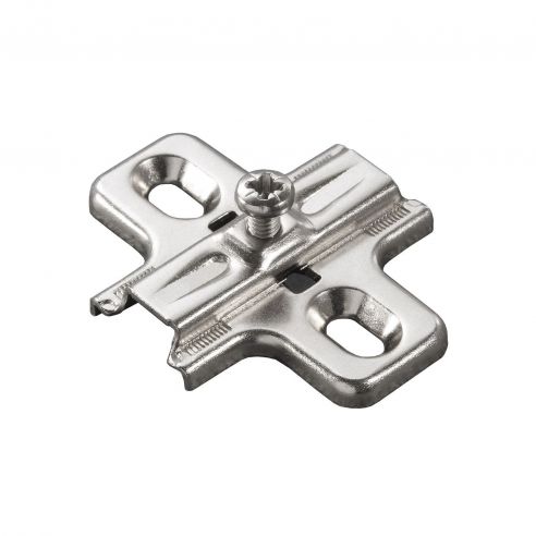 Base H=2 a croce Serie 200 montaggio tradizionale per cerniera Salice B2V3H29, fissaggio mediante viti per legno.