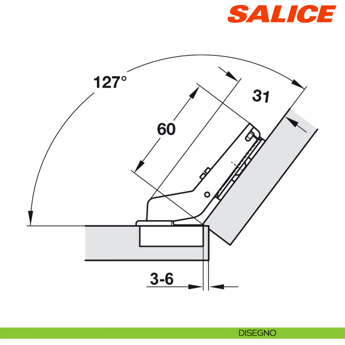 Cerniera Salice C2ABT99 Serie 200 apertura 94 gradi applicazione angolare positiva 30...