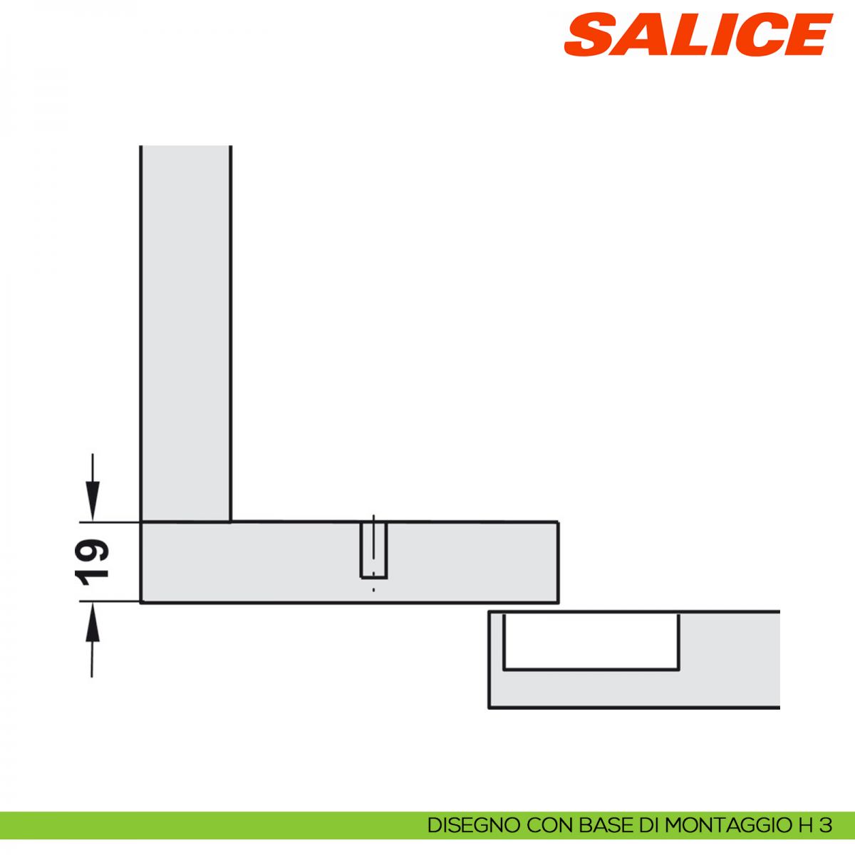 Scopri le cerniere Salice Serie 200 per applicazioni controcollo, ideale per le tue ante in legno con montaggio in linea. Con una chiusura automatica impeccabile e una capacità di adattamento, queste cerniere si distinguono per la loro versatilità e affidabilità. Progettate per ante con uno spessore compreso tra 19 e 35 mm, le Serie 200 offrono un'apertura agevole fino a 94 gradi, garantendo praticità e funzionalità nell'utilizzo quotidiano. La dimensione della scatolina, con un diametro di 35 mm e una profondità di 11 mm, assicura una perfetta integrazione nel tuo mobile, conferendo un aspetto pulito e ordinato. Grazie alla loro compatibilità con tutte le basi tradizionali Serie 200, queste cerniere si adattano senza sforzo a una vasta gamma di progetti e applicazioni. Il sistema unico e organico delle cerniere Serie 200 è stato progettato appositamente per risolvere ogni possibile problema legato all'impiego di cerniere invisibili, offrendo una soluzione completa e affidabile per le tue esigenze di design e funzionalità.