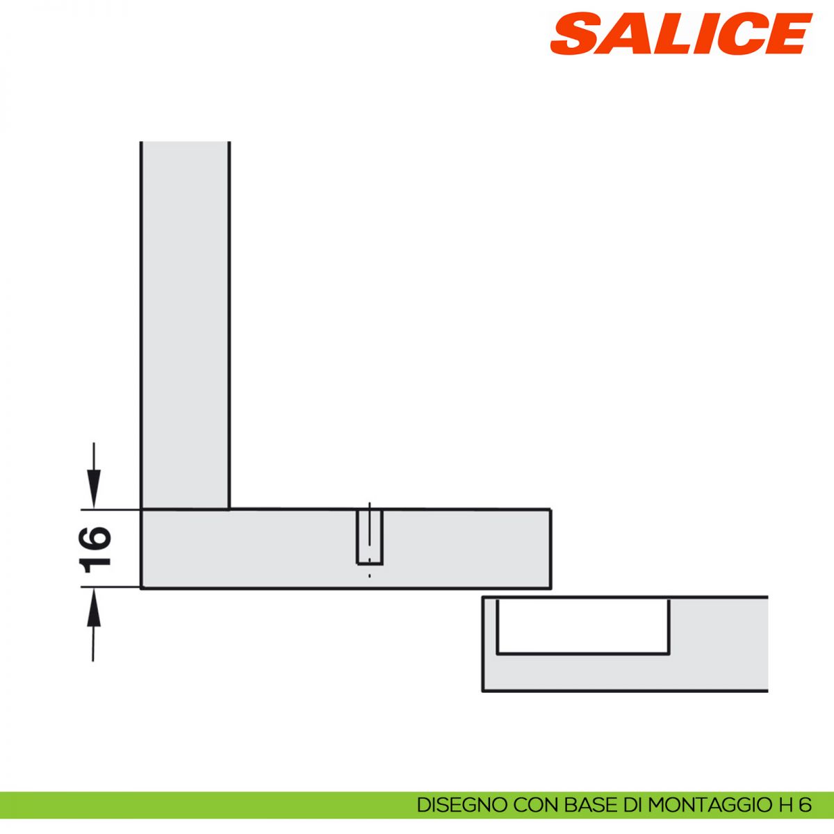Cerniera Salice C2A6N99AM Serie 200 controcollo lungo, per ante in legno con apertura 110 gradi, diametro foratura 35 mm, per ante con spessore minimo 16 mm, chiusura automatica.