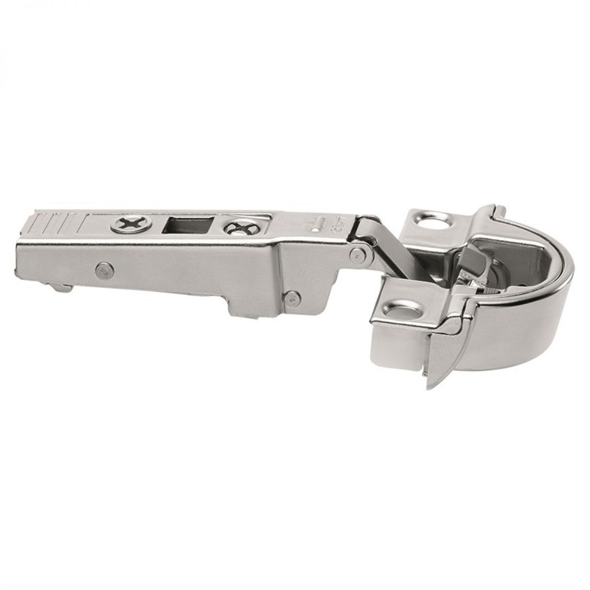 Cerniera Blum 71B970A serie Clip Top Blumotion, per ante con telaio in alluminio stretto con larghezza da 19 a 22 mm, con ammortizzatore Blumotion incorporato, per ante battuta interna, angolo di apertura 95°, con fissaggio a viti.