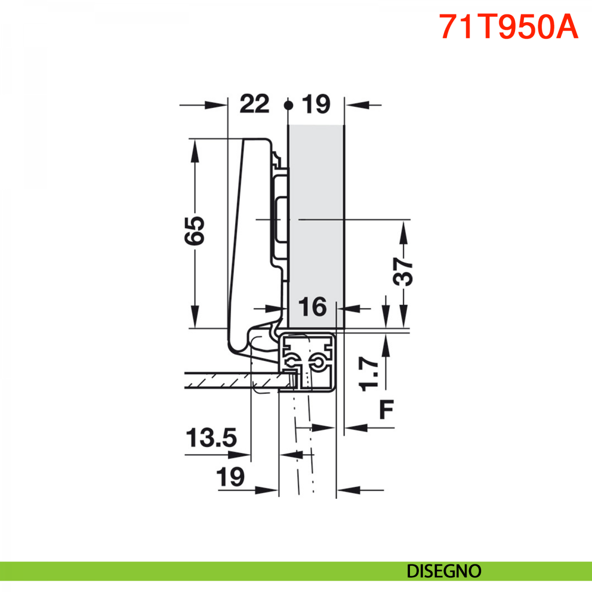 Cerniera per ante in alluminio Blum 71T950A Clip Top a battuta apertura 95 gradi