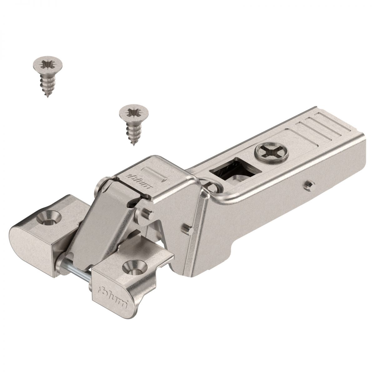 Basetta a croce Blum 175H7100 Clip spessore 0 mm (altezza 8,5 mm), per cerniere Blum Clip Top Blumotion, Clip Top, Clip, applicazioni angolari con cuneo angolare, montaggio con viti per truciolare, nichelato.