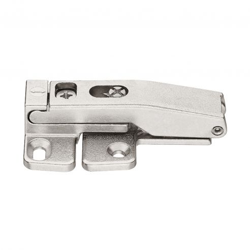 Cerniera intermedia con regolazione Hafele per Huwil Senso ed E-Senso, per ante a ribalta in legno o con telai in alluminio a partire da una larghezza di 20 mm, con funzione di protezione anti-schiacciamento delle dita, in pressofusione di zinco, finitura nichelata.