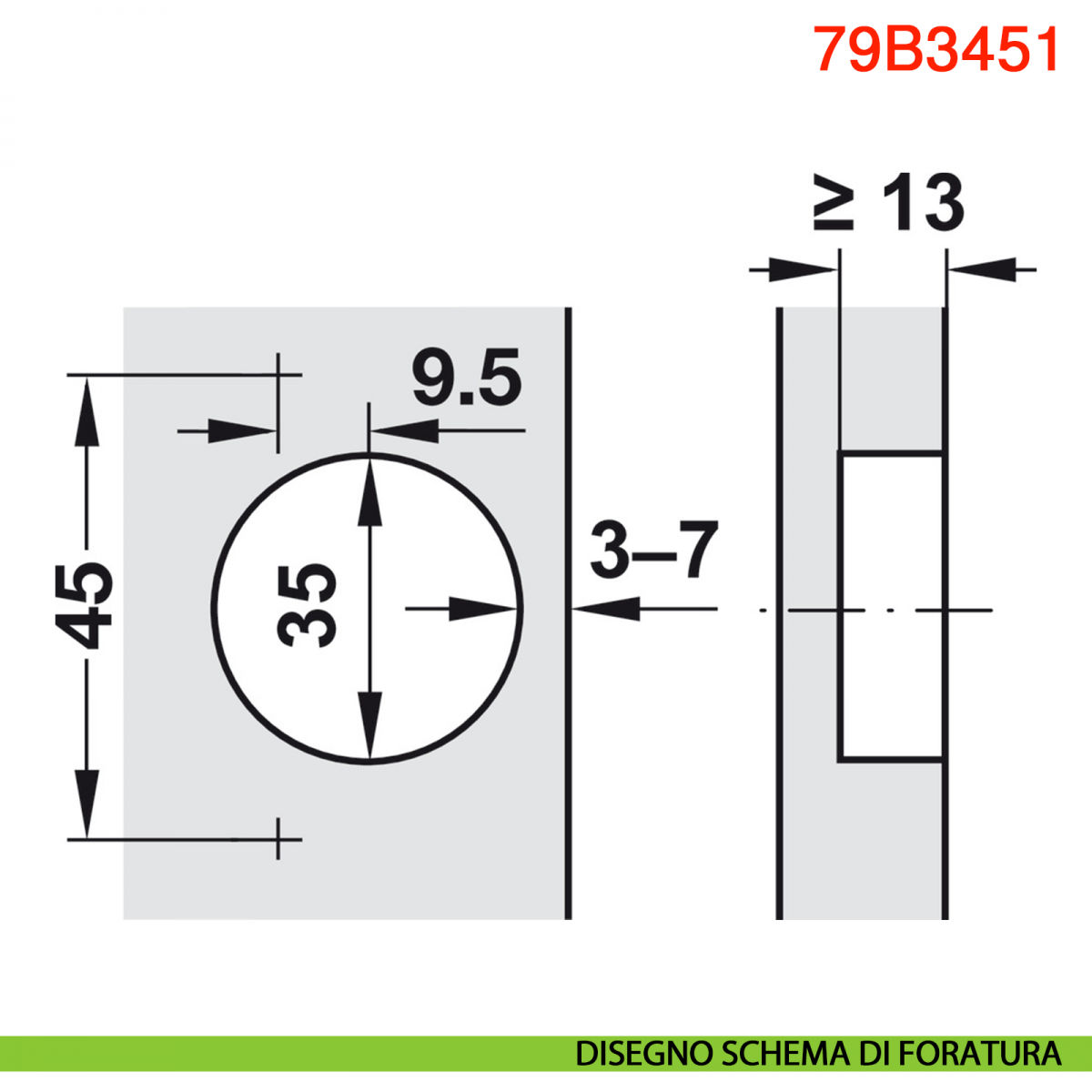 Cerniera Blum 79B3451 Clip Top Blumotion per mobili ad angolo -30 gradi III battuta a sormonto massima ammortizzata 110 gradi