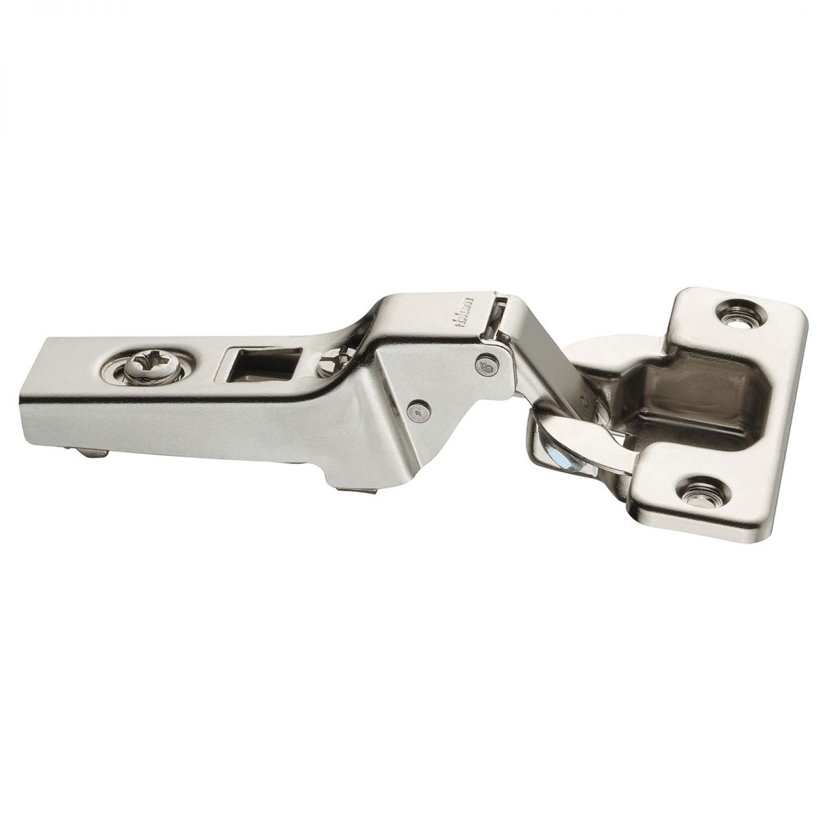 Cerniera Blum 71M2650 serie Clip, per ante a mezza battuta, con molla (chiusura con autoscatto), angolo di apertura 100°, con fissaggio a viti.