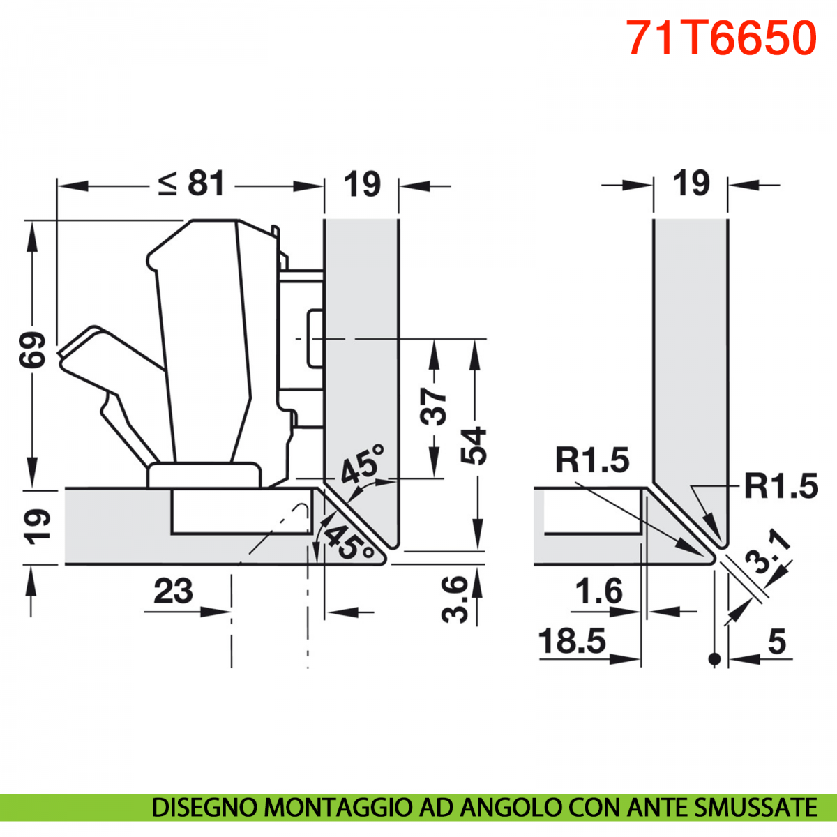 Cerniera Blum 71T6650 Clip Top mezza battuta con molla apertura 170 gradi