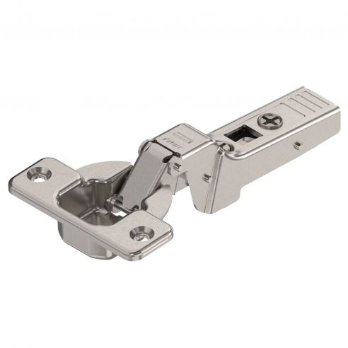 Cerniera Blum 71T9750 serie Clip Top per ante spesse o per ante con profilati, per ante battuta interna, con molla (chiusura con autoscatto), angolo di apertura 95°, con fissaggio a viti.