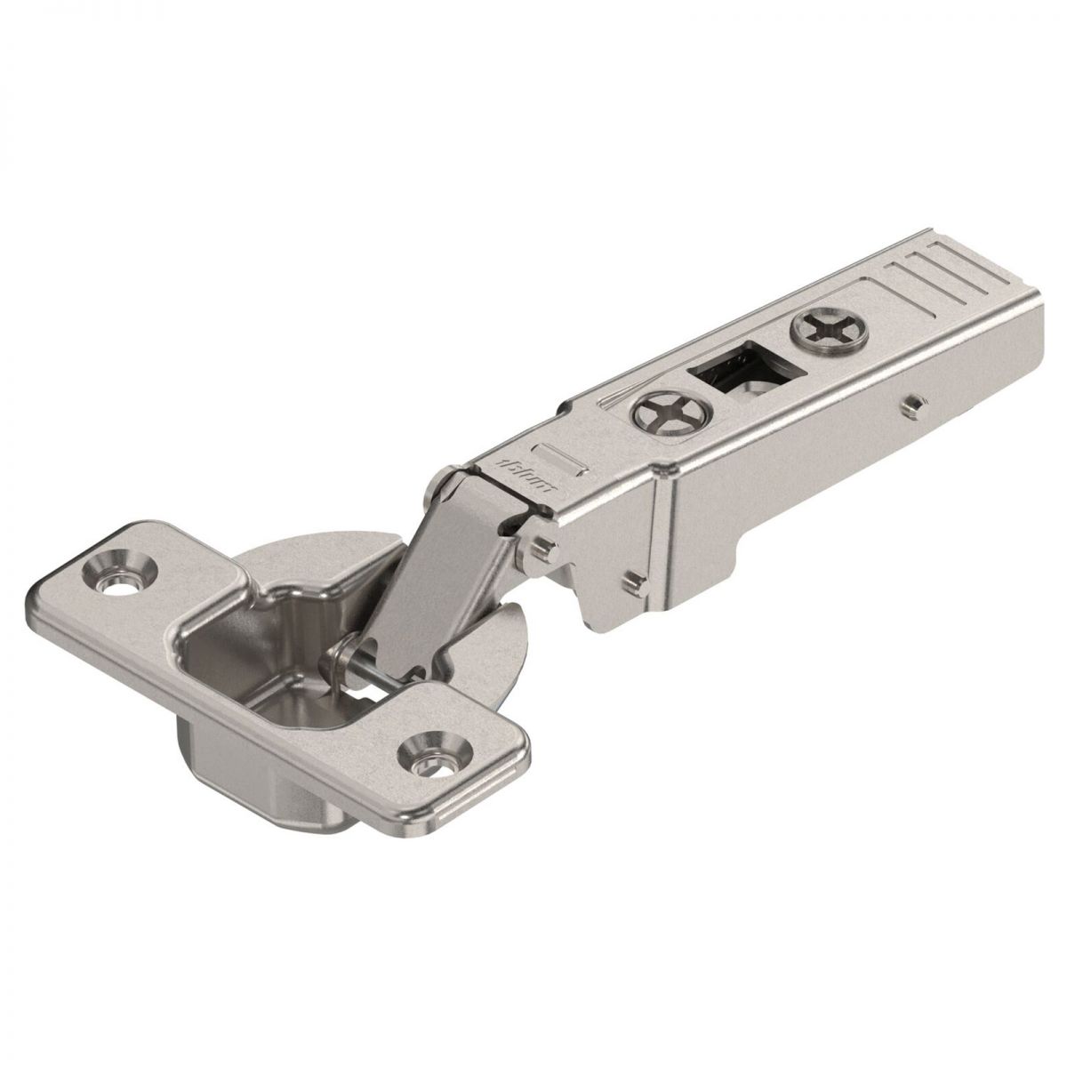 Cerniera Blum 70T9750.TL serie Clip Top per ante spesse o per ante con profilati, per ante battuta interna, senza molla (chiusura libera), angolo di apertura 95°, con fissaggio a viti.