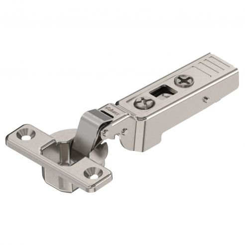 Cerniera Blum 71T0750 serie Clip Top Mini per ante con telai stretti, per ante battuta interna, con molla (chiusura con autoscatto), angolo di apertura 94°, con fissaggio a viti.