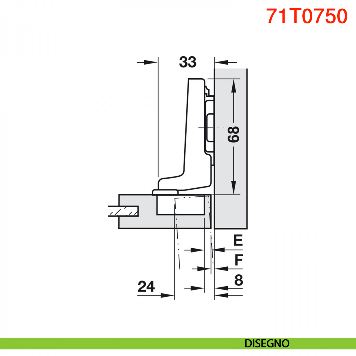 Cerniera Blum 71T0750 Clip Top Mini per ante con telai stretti a battuta interna con molla apertura 94 gradi