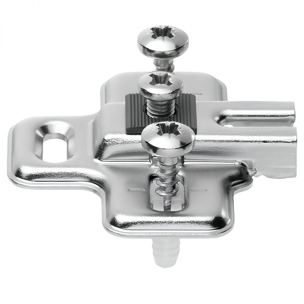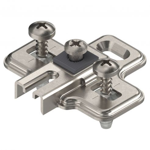 Basetta a croce Blum Modul per anta frigorifero altezza 0 mm, per cerniera Blum Modul 91K9550, montaggio con viti speciali premontate con bussole a espansione (EXPANDO), nichelato.