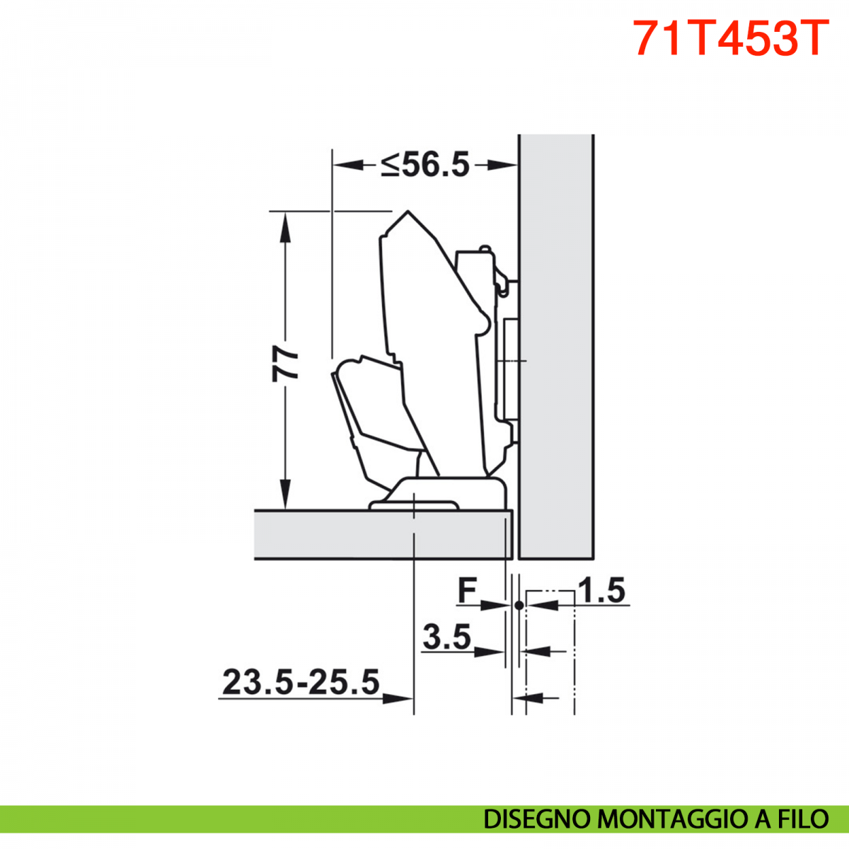 Cerniera Blum 71B453T serie Clip Top Blumotion, per anta sottile spessore da 8 a 14 mm, con ammortizzatore Blumotion incorporato, angolo di apertura 110°, protusione 0, fissaggio EXPANDO T per i materiali più diversi.