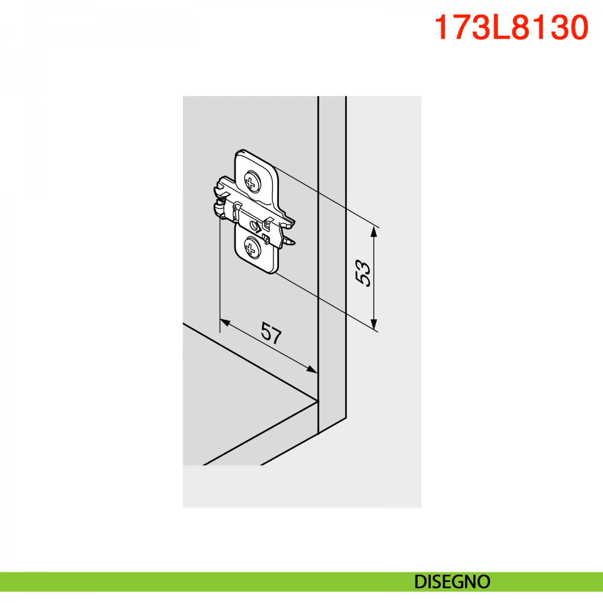 Basetta a croce Blum 173L8130 Clip spessore 3 mm montaggio con viti euro premontate