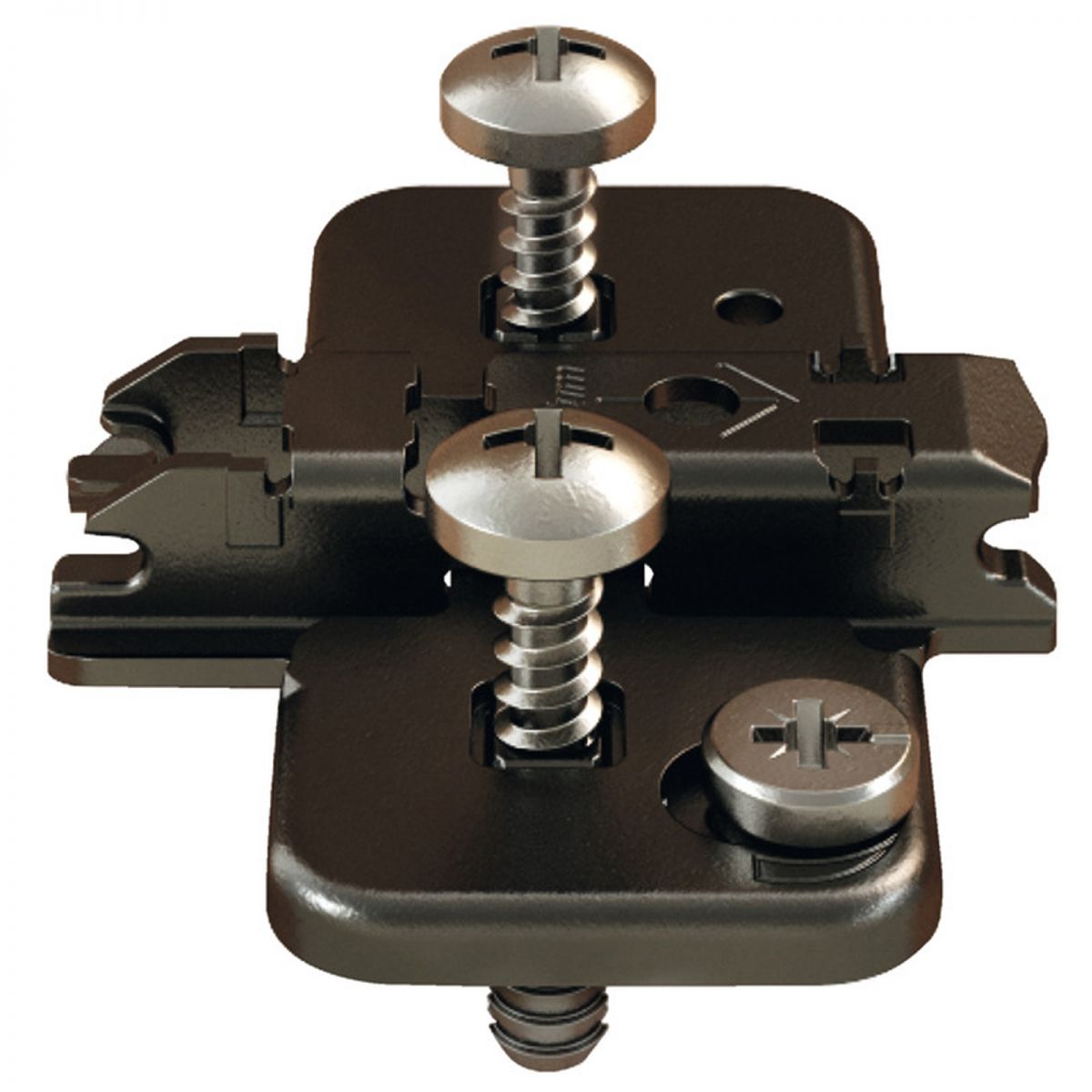 Basetta a croce Blum 174H7100E Clip spessore 0 mm (altezza 8,5 mm), con eccentrico di regolazione, per cerniere Blum Clip Top Blumotion, Clip Top, Clip, applicazioni angolari con cuneo angolare, montaggio con viti speciali premontate con bussole a espansione (EXPANDO), nero onice.