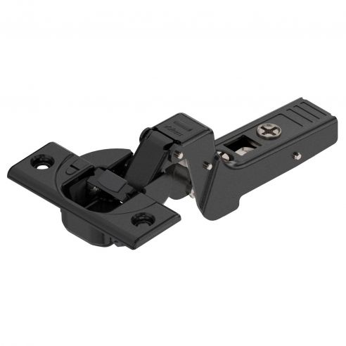 Cerniera Blum 71B9750 serie Clip Top Blumotion, per ante spesse o per ante con profilati fino a 32 mm, per ante battuta interna, con ammortizzatore Blumotion incorporato, angolo di apertura 95°, con fissaggio a viti, nero onice.