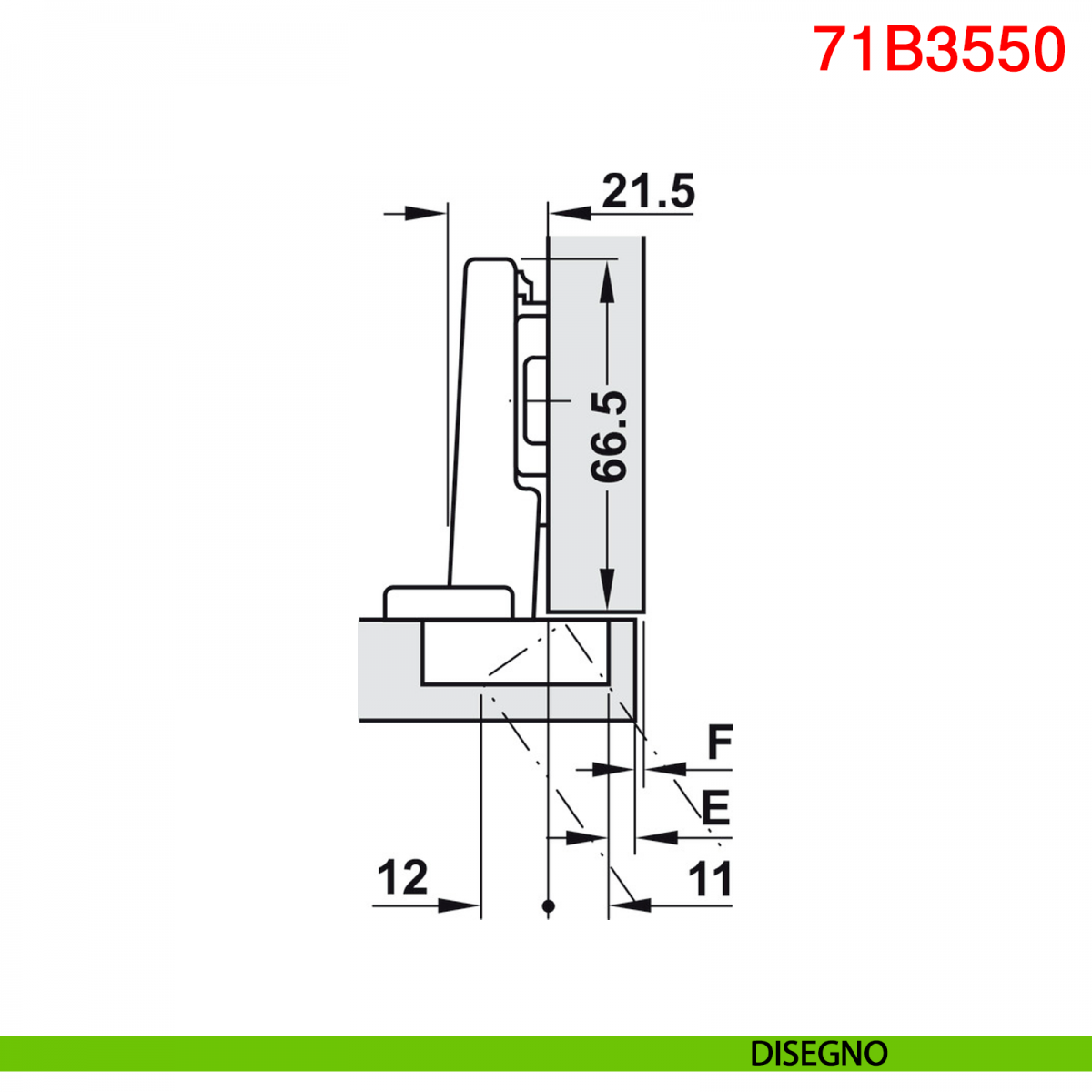 Cerniera Blum 71B3550 serie Clip Top Blumotion, per ante a battuta, con ammortizzatore Blumotion incorporato, angolo di apertura 110°, con fissaggio a viti.