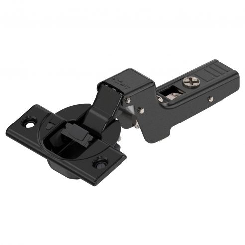 Cerniera Blum 71B3750 serie Clip Top Blumotion, per ante battuta interna, con ammortizzatore Blumotion incorporato, angolo di apertura 110°, con fissaggio a viti, nero onice.