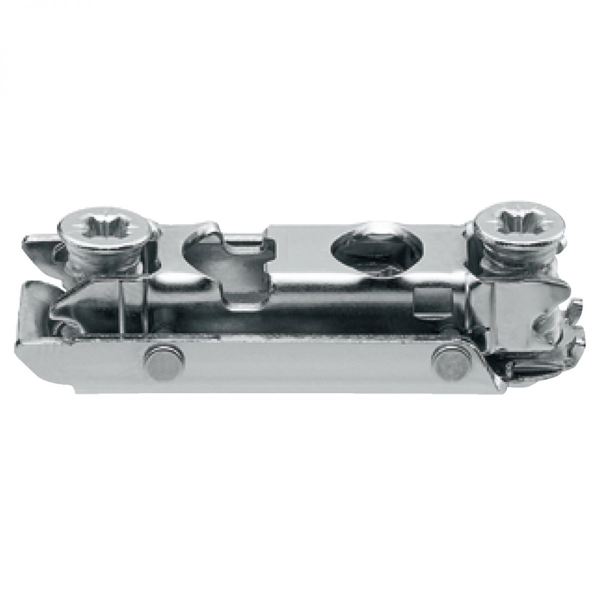 Basetta dritta Blum 175H4100 Clip spessore 0 mm (altezza 8,5 mm) , con eccentrico di regolazione, per ante doppia battuta, per cerniere Blum Clip Top Blumotion, Clip Top, Clip, montaggio con viti euro premontate, nichelato.