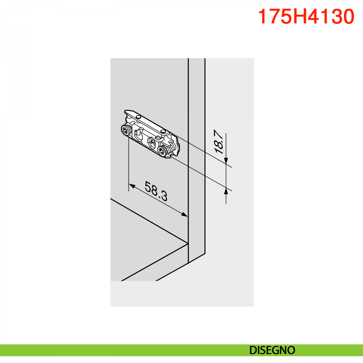 Basetta dritta Blum 175H4130 Clip spessore 3 mm con eccentrico montaggio con viti euro premontate
