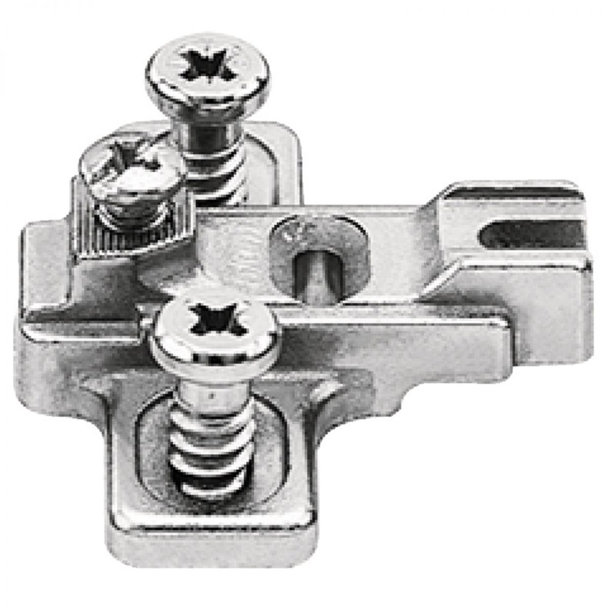 Basetta a croce Blum 199.8130 Modul spessore 3 mm (altezza 12,2 mm), per cerniere per mobili con colonna a filo Blum Modul Blumotion 95°, montaggio con viti euro premontate, nichelato.