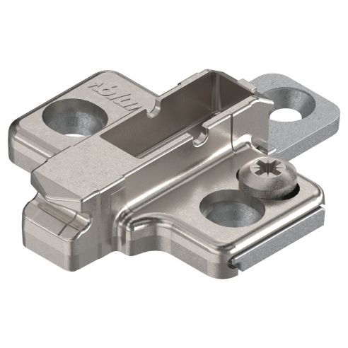 Basetta a croce Blum 175H9100 Clip spessore 0 mm (altezza 8,5 mm), per cerniere Blum Clip Top Blumotion, Clip Top, Clip, applicazioni angolari con cuneo angolare, montaggio con viti euro, nichelato.