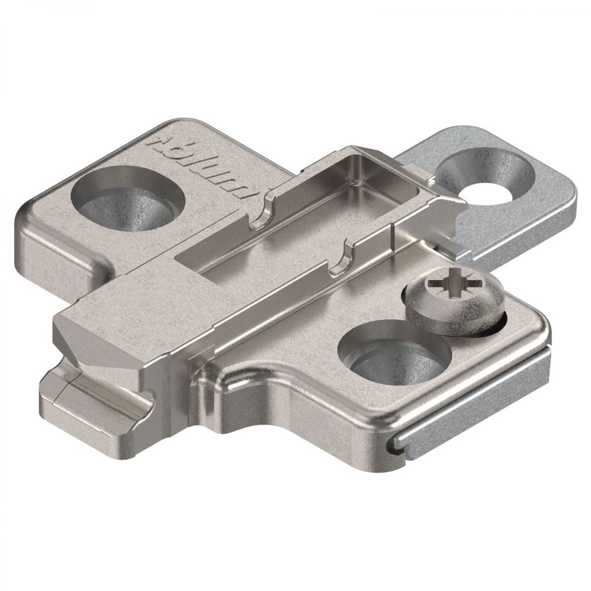 Basetta a croce Blum 175H7100 Clip spessore 0 mm (altezza 8,5 mm), per cerniere Blum Clip Top Blumotion, Clip Top, Clip, applicazioni angolari con cuneo angolare, montaggio con viti per truciolare, nichelato.