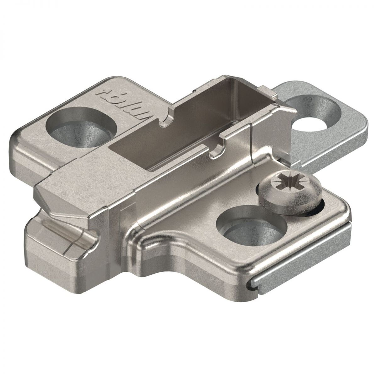 Basetta a croce Blum 175H7100 Clip spessore 0 mm (altezza 8,5 mm), per cerniere Blum Clip Top Blumotion, Clip Top, Clip, applicazioni angolari con cuneo angolare, montaggio con viti per truciolare, nichelato.