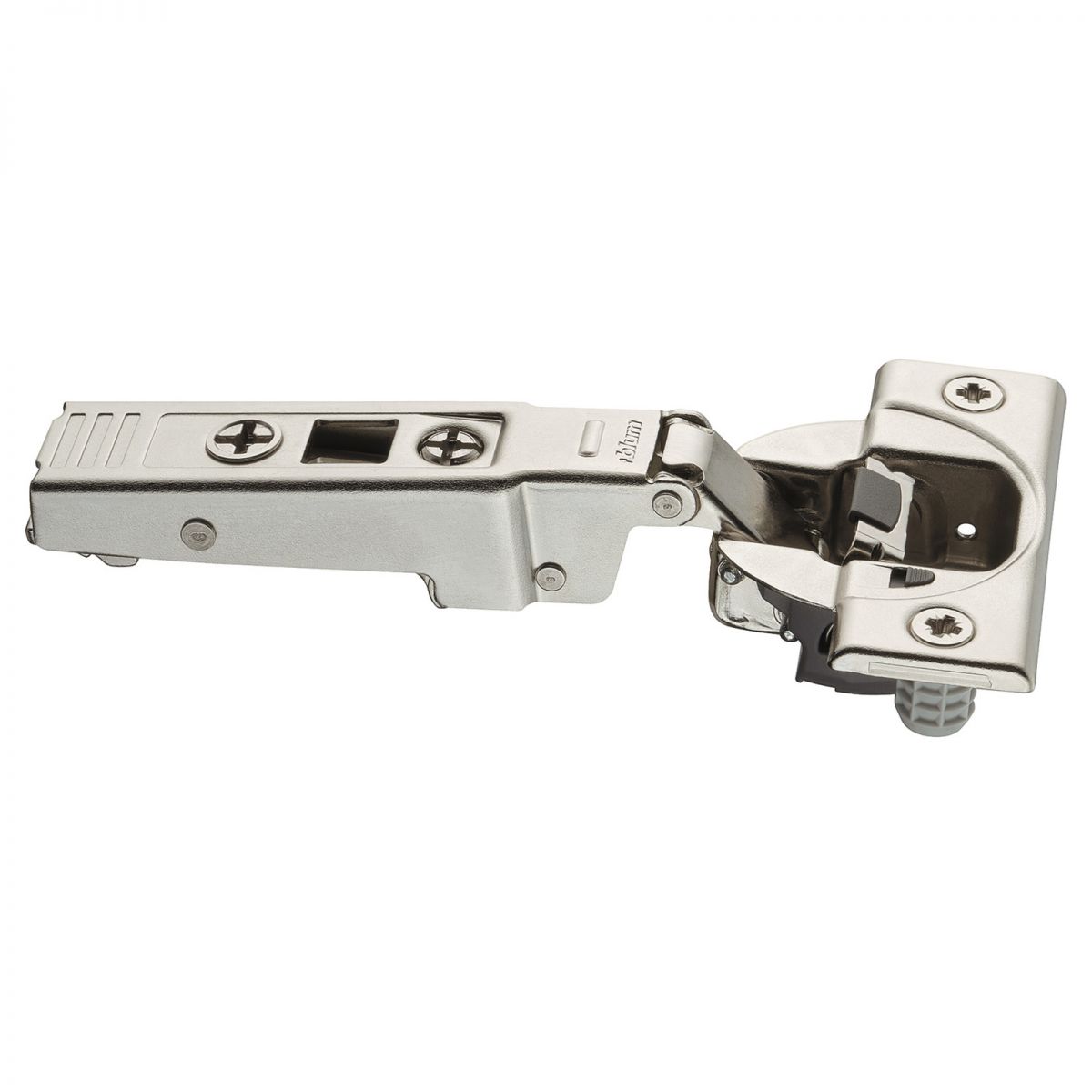Cerniera Blum 71B9780 serie Clip Top Blumotion, per ante spesse o per ante con profilati fino a 32 mm, per ante battuta interna, con ammortizzatore Blumotion incorporato, angolo di apertura 95°, fissaggio del fondello a pressione.