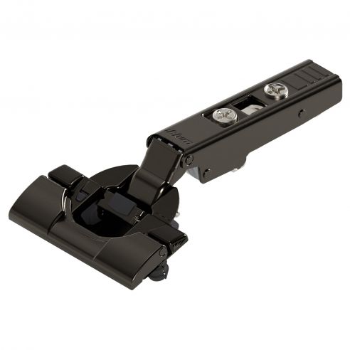 Cerniera Blum 71B3590 serie Clip Top Blumotion, per ante a battuta, con ammortizzatore Blumotion incorporato, angolo di apertura 110°, con INSERTA che permette il montaggio senza attrezzi del fondello, nero onice.