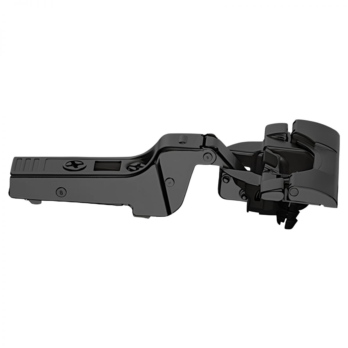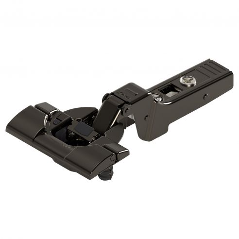 Cerniera Blum 71B9590 serie Clip Top Blumotion, per ante spesse o per ante con profilati fino a 32 mm, per ante a battuta, con ammortizzatore Blumotion incorporato, angolo di apertura 95°, con INSERTA che permette il montaggio senza attrezzi del fondello, nero onice.