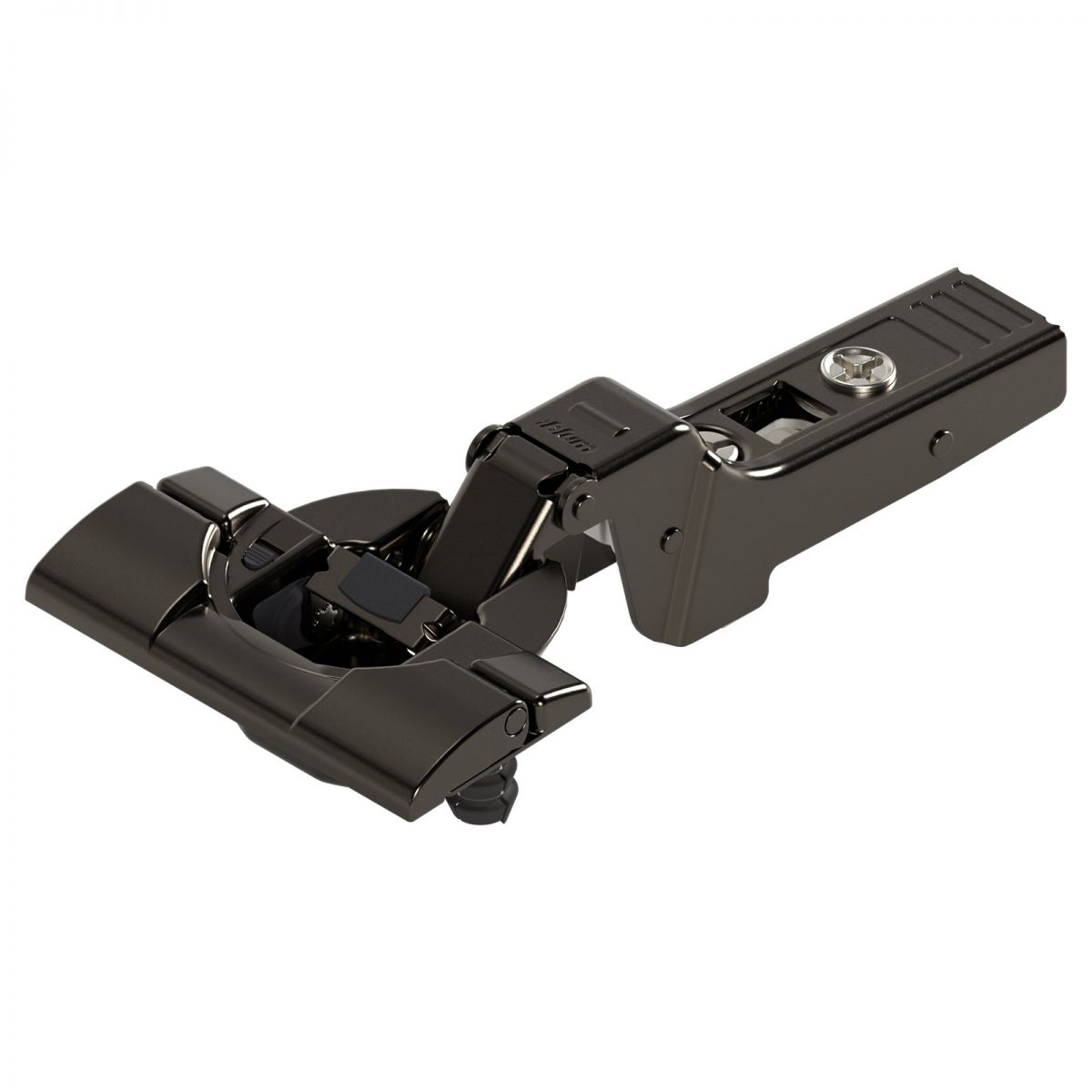 Cerniera Blum 71B9790 serie Clip Top Blumotion, per ante spesse o per ante con profilati fino a 32 mm, per ante battuta interna, con ammortizzatore Blumotion incorporato, angolo di apertura 95°, con INSERTA che permette il montaggio senza attrezzi del fondello, nero onice.