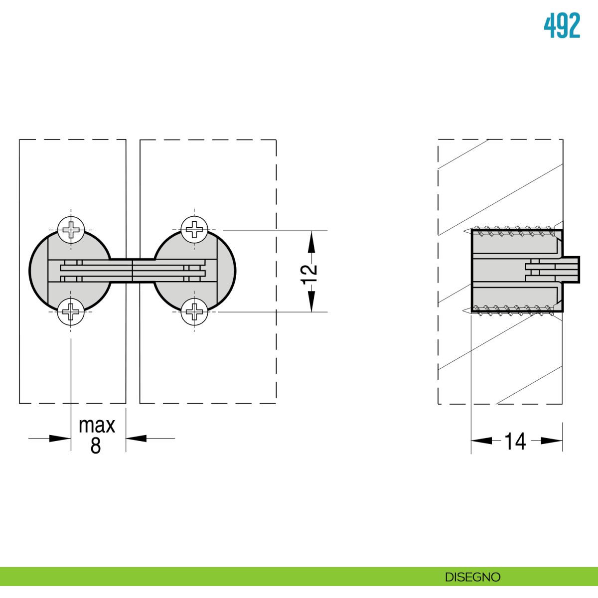 Cerniera cilindrica a scomparsa diametro 12 mm per mobile Ceam 492.