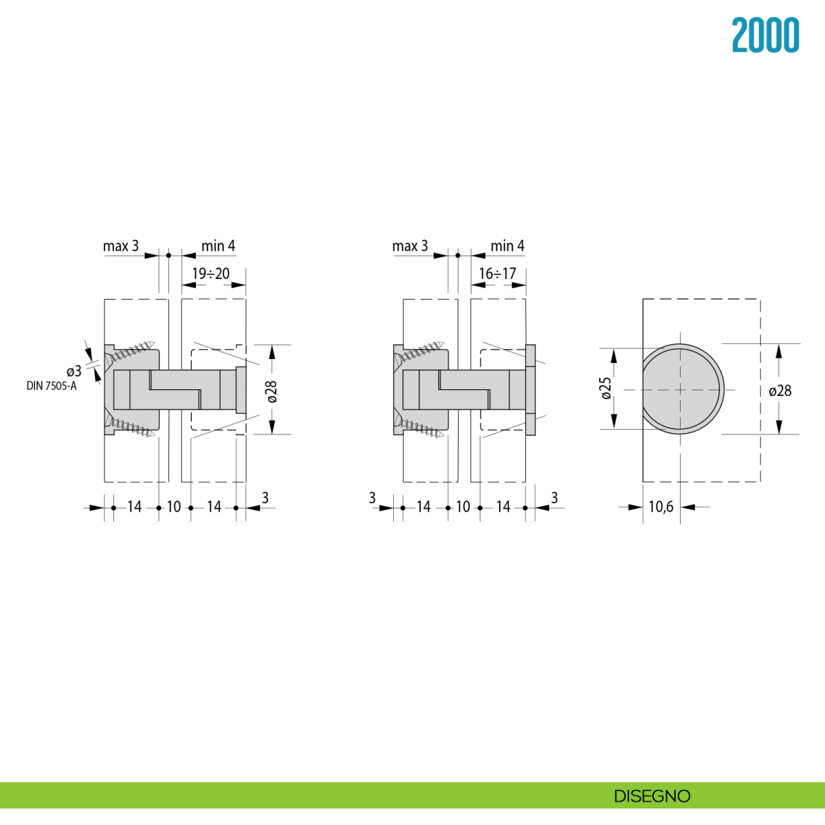 Cerniera a scomparsa diametro 25 mm per tavolo Ceam 2000.