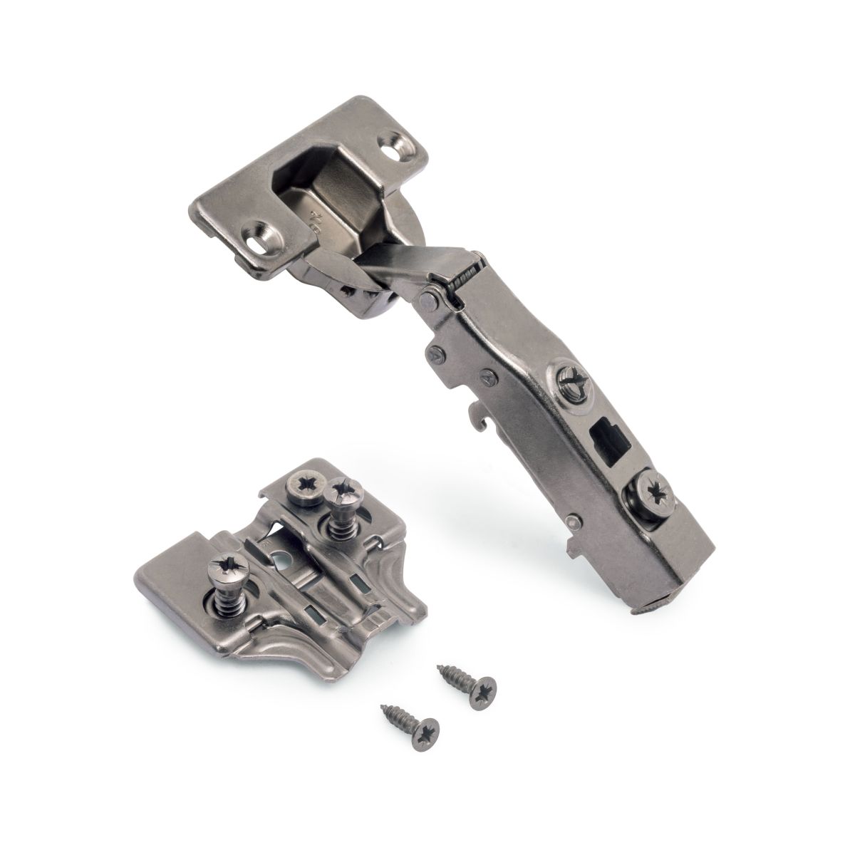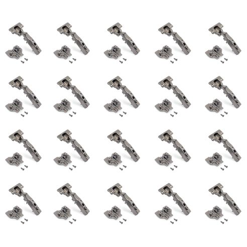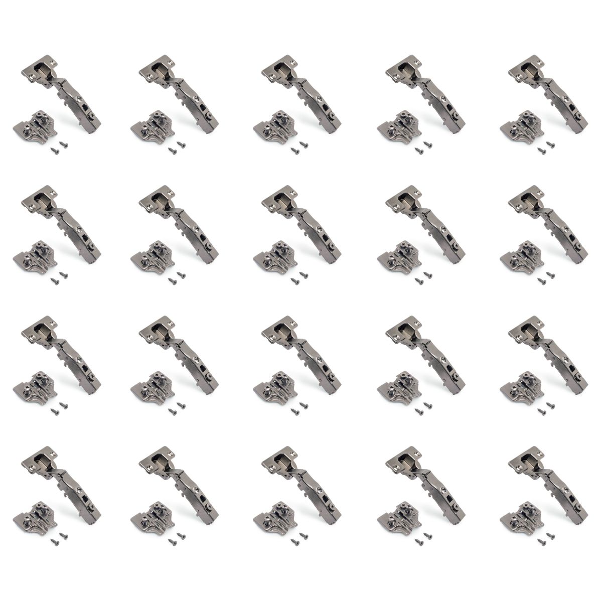 Emuca Lotto di 20 cerniere collo dritto X91 con chiusura soft e Basetta Euro, altezza 0, Acciaio, Titanio