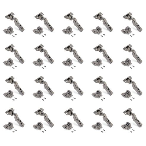 Emuca Lotto di 20 cerniere mezzo collo X91 con chiusura soft e Basetta Euro, altezza 0, Nichelato, Titanio