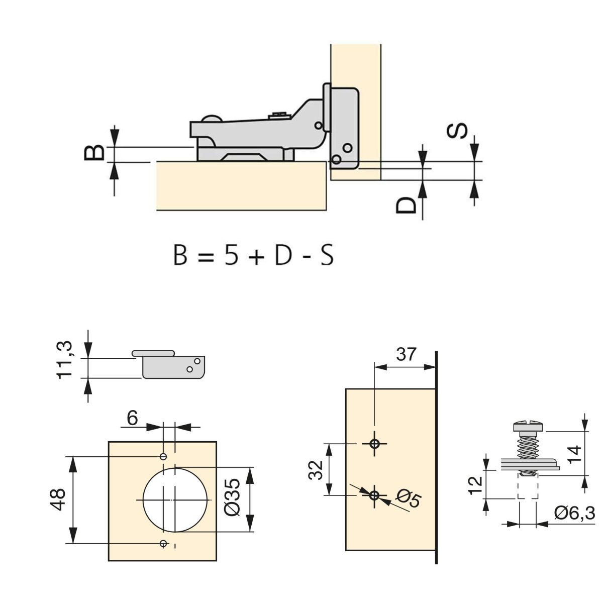 • Tolleranza di foratura dello scodellino D = 3 - 7 mm.