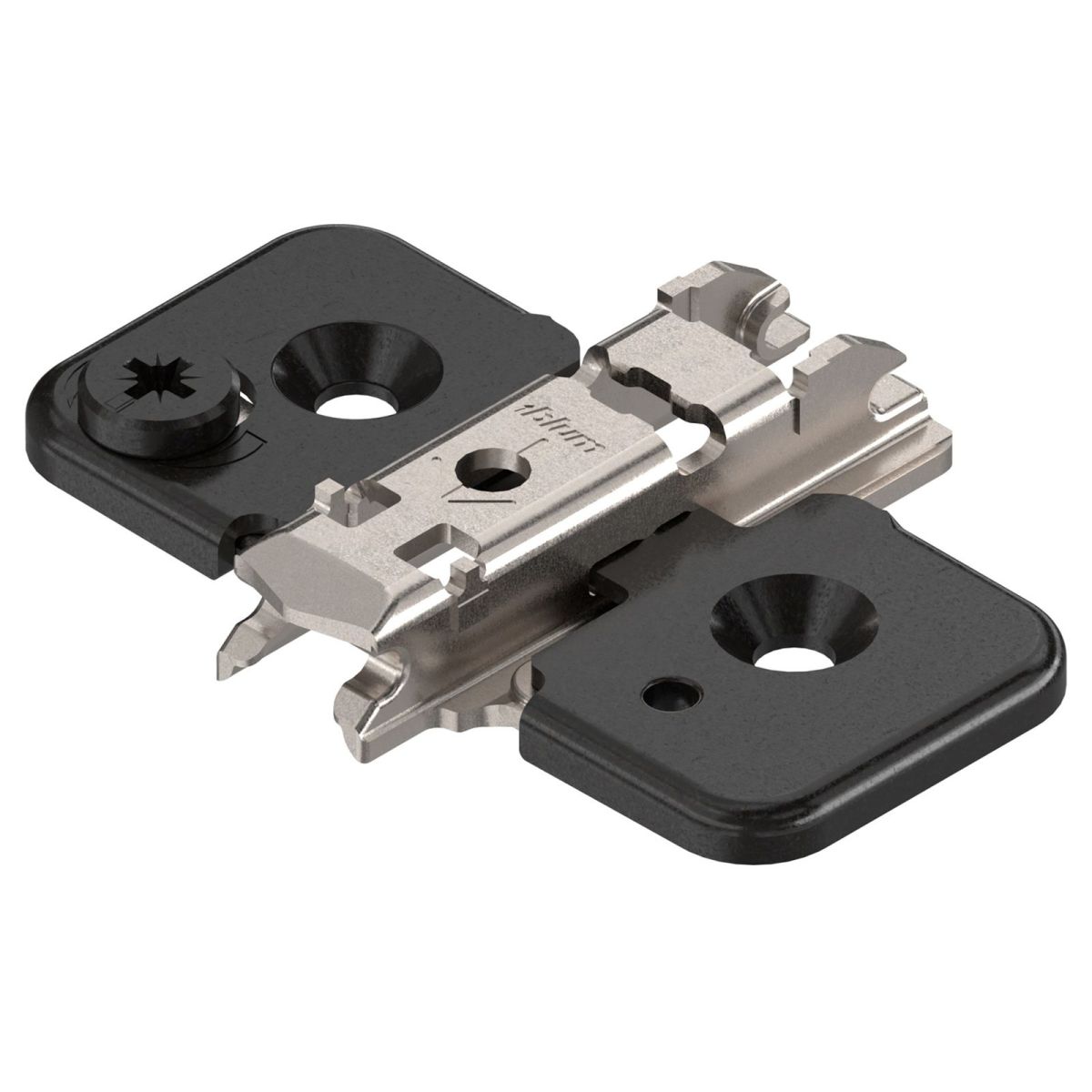 Basetta a croce Blum 173H7100 Clip spessore 0 mm (altezza 8,5 mm) , con eccentrico di regolazione, per cerniere Blum Clip Top Blumotion, Clip Top, Clip, applicazioni angolari con cuneo angolare, montaggio con viti per truciolare, nero onice.