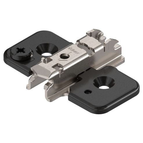 Basetta a croce Blum 173H7100 Clip spessore 0 mm (altezza 8,5 mm) , con eccentrico di regolazione, per cerniere Blum Clip Top Blumotion, Clip Top, Clip, applicazioni angolari con cuneo angolare, montaggio con viti per truciolare, nero onice.