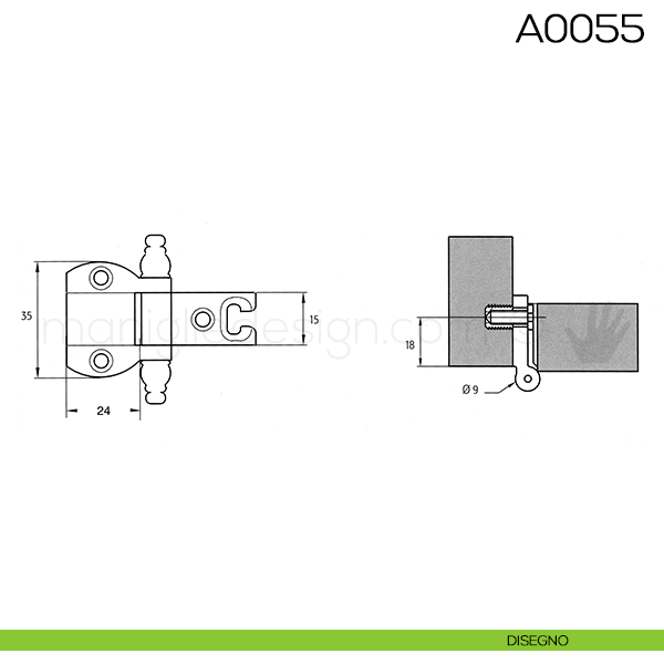 Cerniera Anselmi per porte in luce scodellino diametro 35 mm articolo A0055.