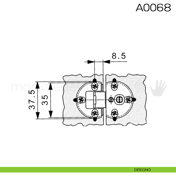Cerniera Anselmi per ribalta scodellino diametro 35 mm articolo A0068.